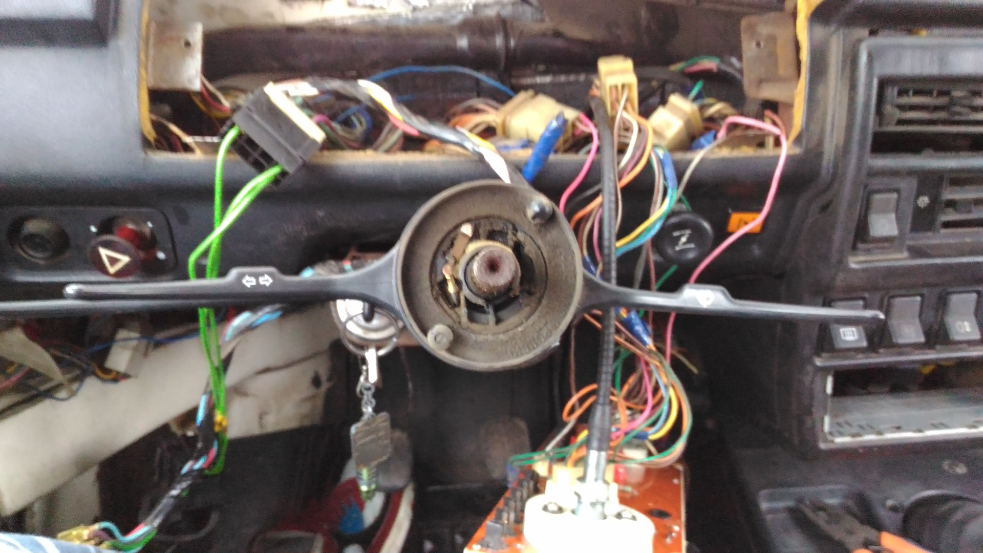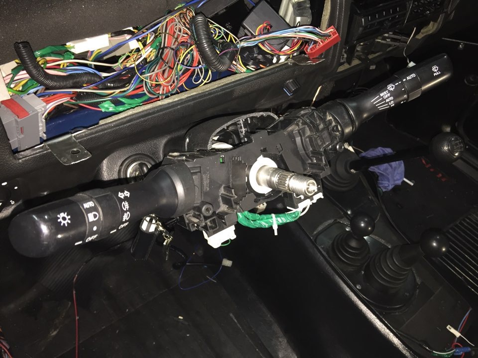 Снять руль, пластиковый кожух рулевой колонки и штатные подрулевые переключатели.