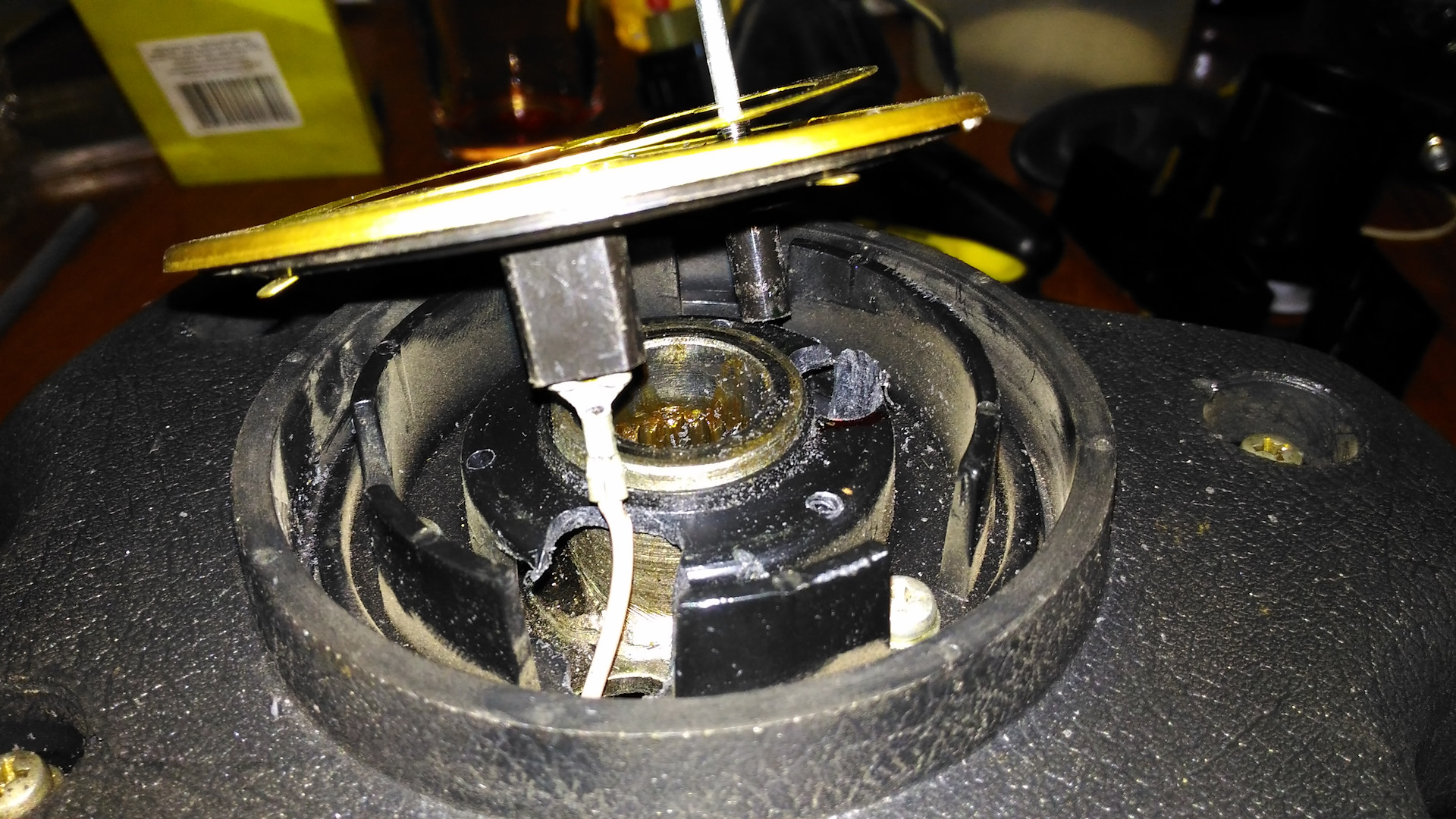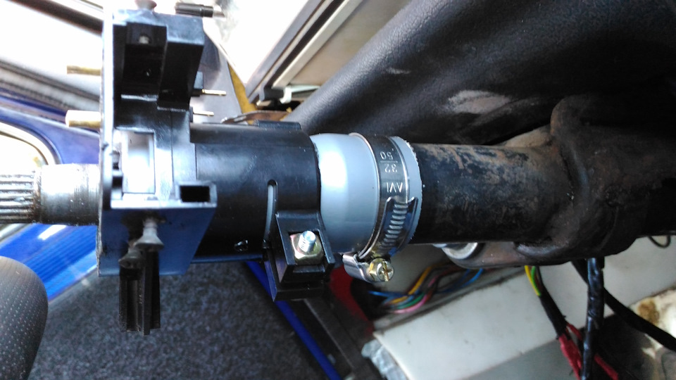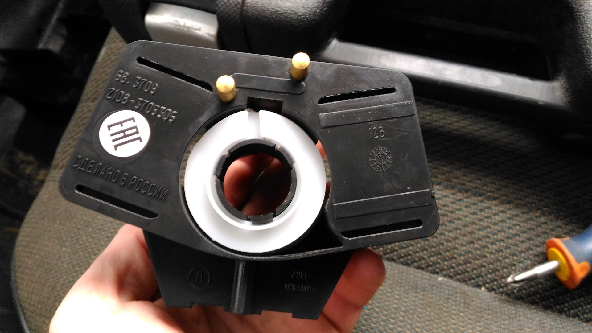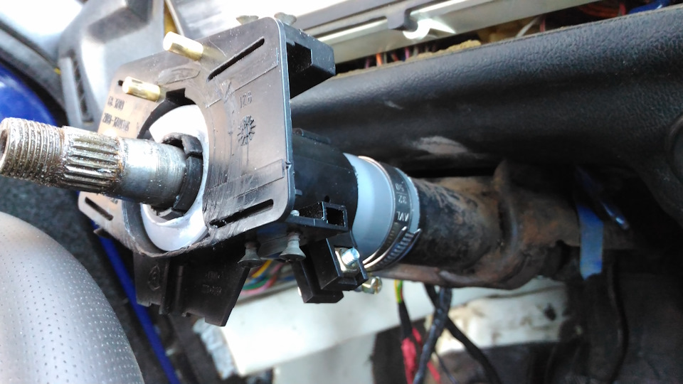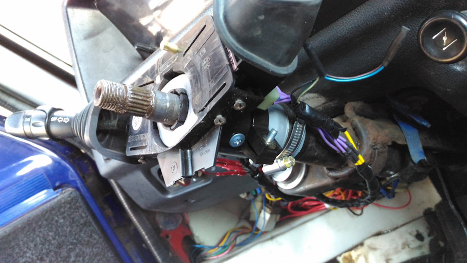 Установить этот кусок на рулевой вал. Зажимаем патрубок хомутом и одеваем центральную часть 2108. Примеряем руль. Контактное кольцо 2108 отлично соединяется с центральной частью подрулевых. Подрулевые Лачетти в центральной части 2108 закрепляем с помощью небольших винтиков. Они не входят внутрь подрулевых, а просто зажимают их с двух сторон.