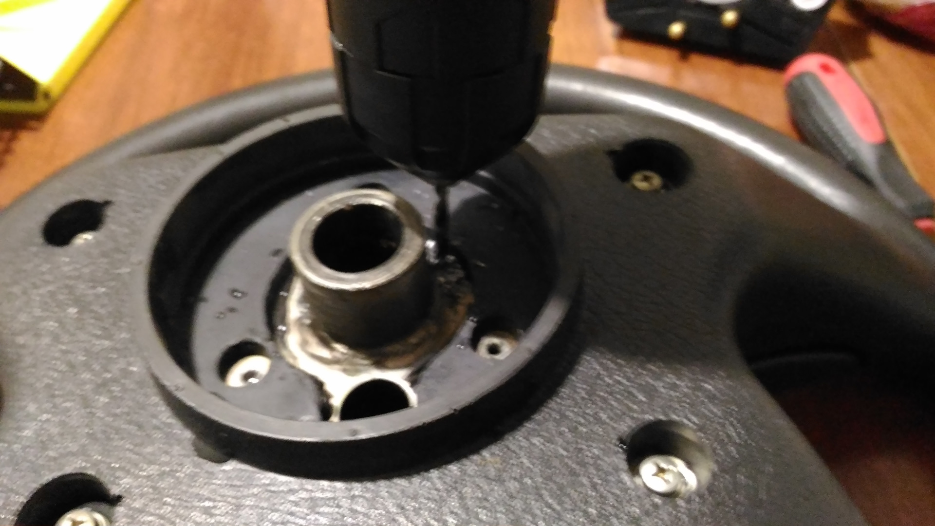 Дальше нужно просверлить отверстие в руле, в которое будет входить флажок с помощью которого будут откидываться поворотники. Устанавливаем кольцо.