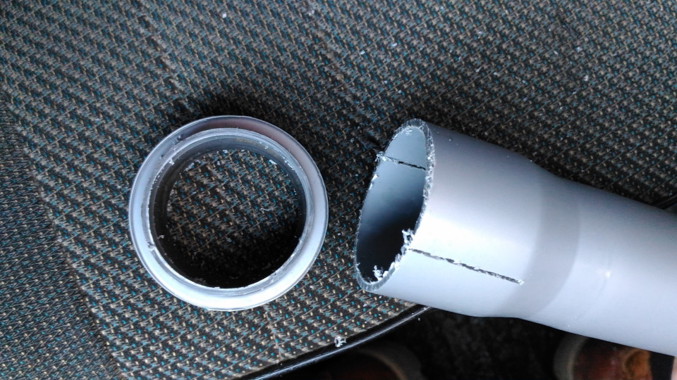 Теперь нужно закрепить переключатели на рулевой колонке Нивы. Для начала нужно отпилить часть пластиковой сантехнической трубы.