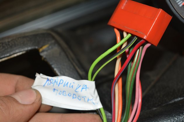 Снимаем старую приборную панель. Белая и красная колодки нового щитка приборов имеют другую распиновку (см. схема панели Lada 4x4), поэтому главная задача переподключить провода в нужном порядке.