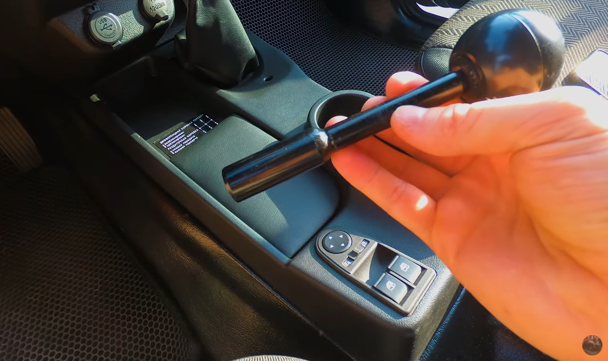 Теперь в случае необходимости крышку с тоннеля потребуется снять, и установить ручку для РК. Заглушка позволяет существенно снизить шум в салоне во время движения внедорожника. Теперь можно разговаривать на скорости 90 км/ч в пол голоса.