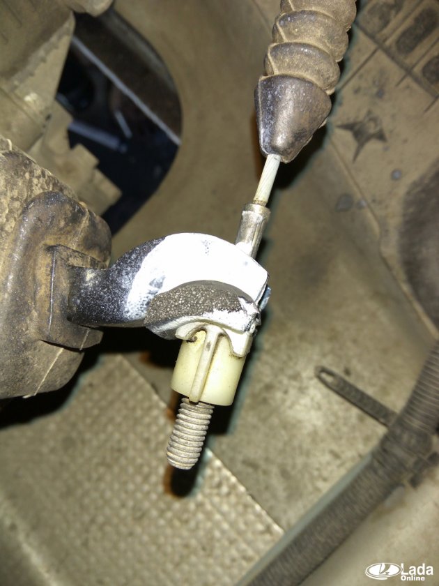 Цель: установить прокладку между тросом сцепления и вилкой КПП