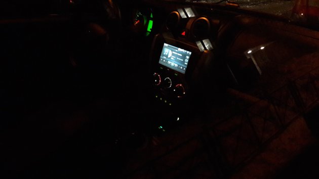Снимаем центральную накладку панели приборов (торпедо), для этого поддеваем отверткой все рукоятки регуляторов печки, а затем и саму пластиковую накладку, отщелкивая ее по периметру, начиная с нижнего правого угла. Затем устанавливаем светодиодные модули на двусторонний скотч. Яркая подсветка нам гарантирована.