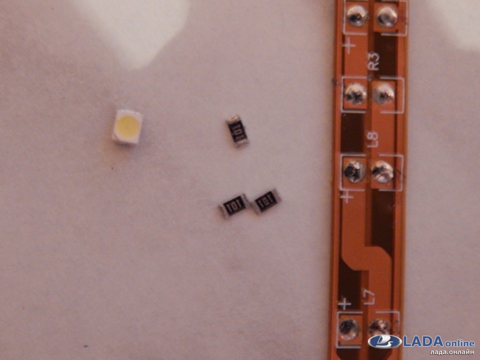 Потребуется: разобрать комбинацию приборов, приготовить паяльник, светодиод (типа 3528) 1шт и резисторы (типа 101, 1,2 кОм) 3шт (можно взять со светодиодной ленты).