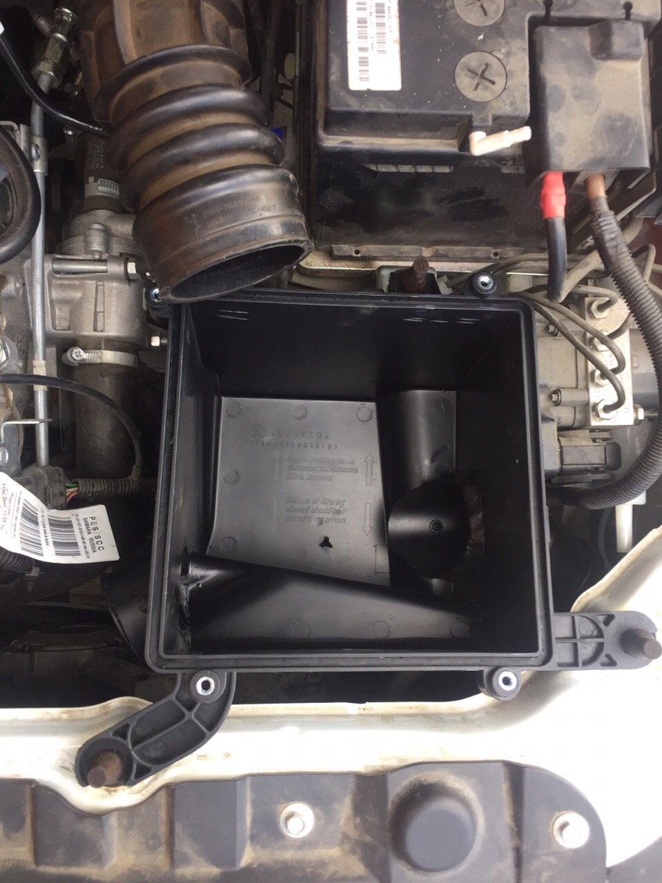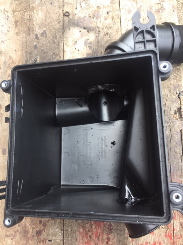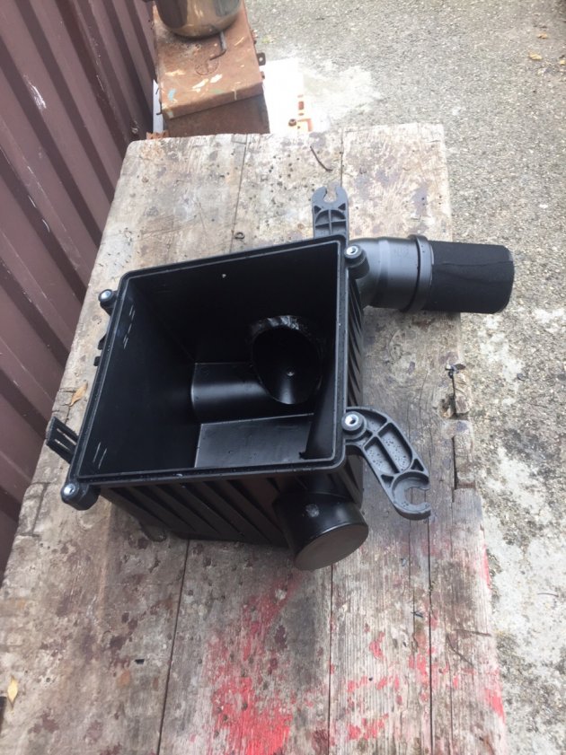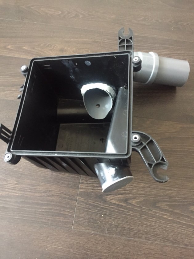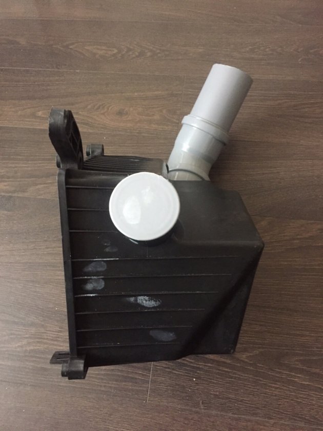 2. Штатную впускную приемную трубу демонтируем. Штатное отверстие в корпусе фильтра закрыть заглушкой ступичной гайки от ВАЗ 2108. Сделать в нижней части корпуса воздушного фильтра отверстие диаметром 100 мм.