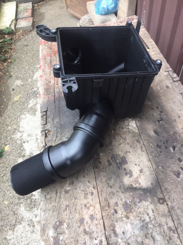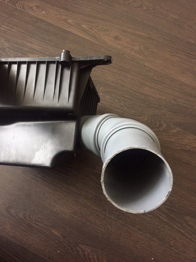 1. Заменить резиновый патрубок, идущий от дросселя до корпуса воздушного, на стальной. Он не будет снижать скорость потока воздуха, т.к. внутри него поверхность гладкая (нет ступенек). Соединить стальной патрубок с корпусом фильтра, можно при помощи нижнего патрубка охлаждающей жидкости от Камаза (лучше взять силиконовый).