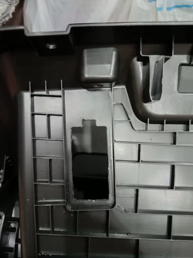 - Сделать отверстие в корпусе бардачка под плафон освещения (с завода уже есть разметка под него), используя канцелярский нож и сверло.