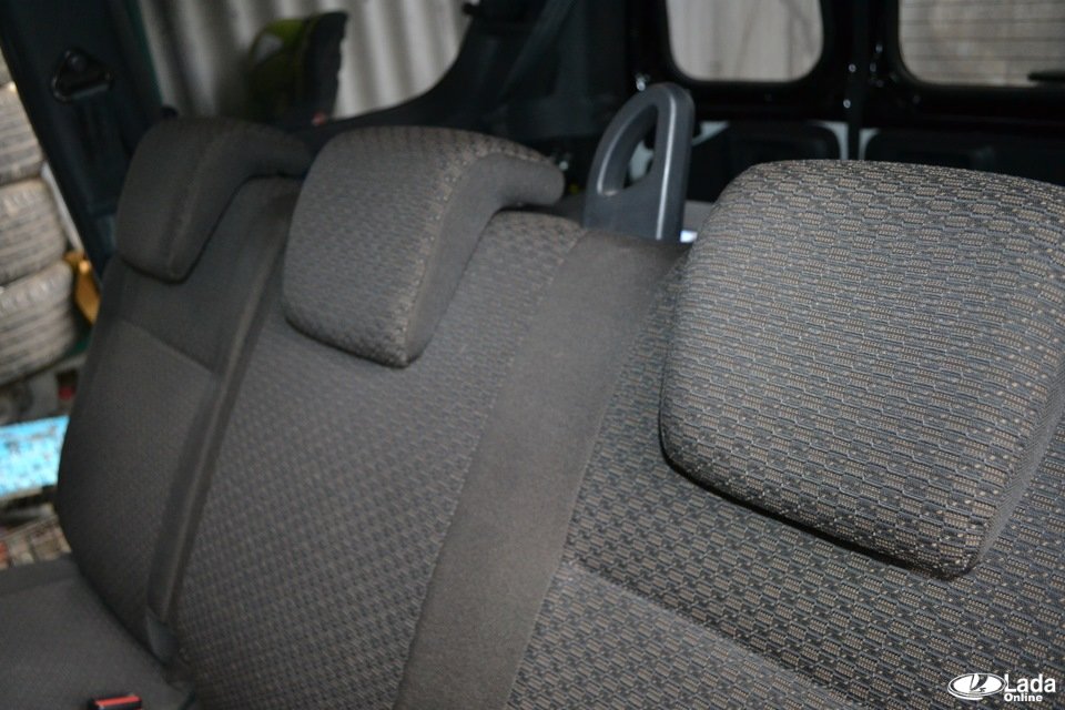 Второй ряд сидений на Лада Ларгус удобным не назовешь, угол спинки дивана равен практически 90 градусов. Чтобы сделать поездку для задних пассажиров более комфортной предлагается немного опустить спинку второго ряда сидений назад.