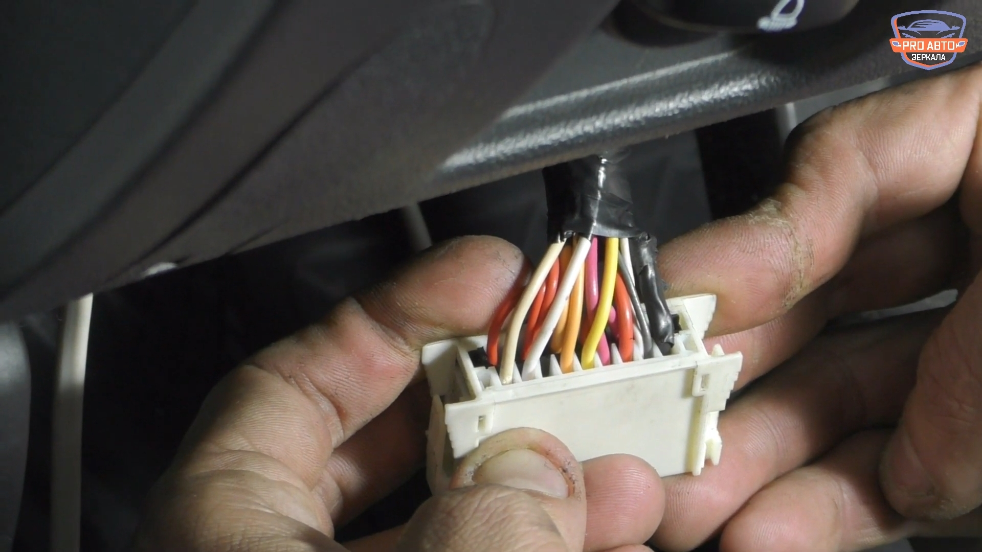 5. Проложить провода для указателя поворота и электроскладывания. Поворотники подключаем к фишке блока бортовой электроники в нижней части торпедо (бежевый - левая сторона, белый - правая сторона, черный - масса). Подключить кнопку.