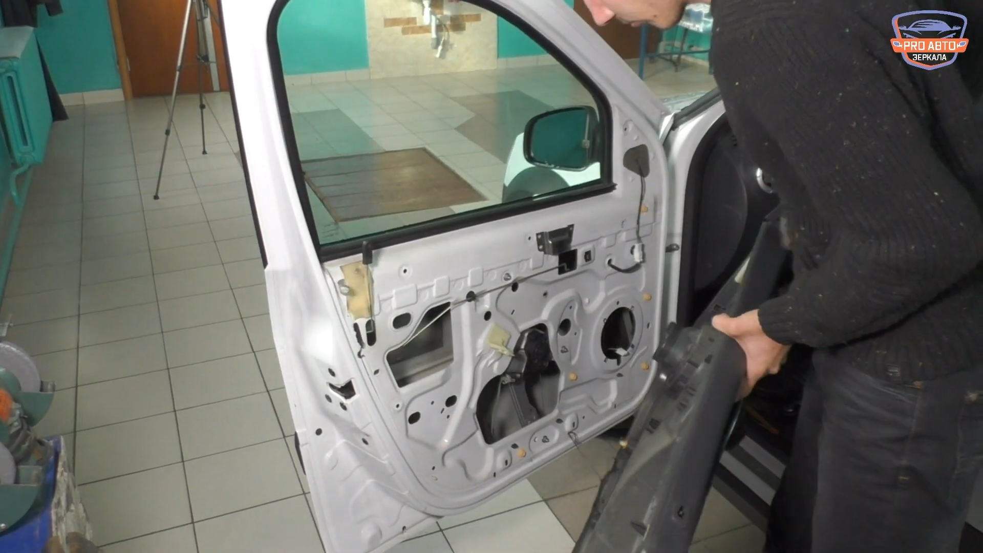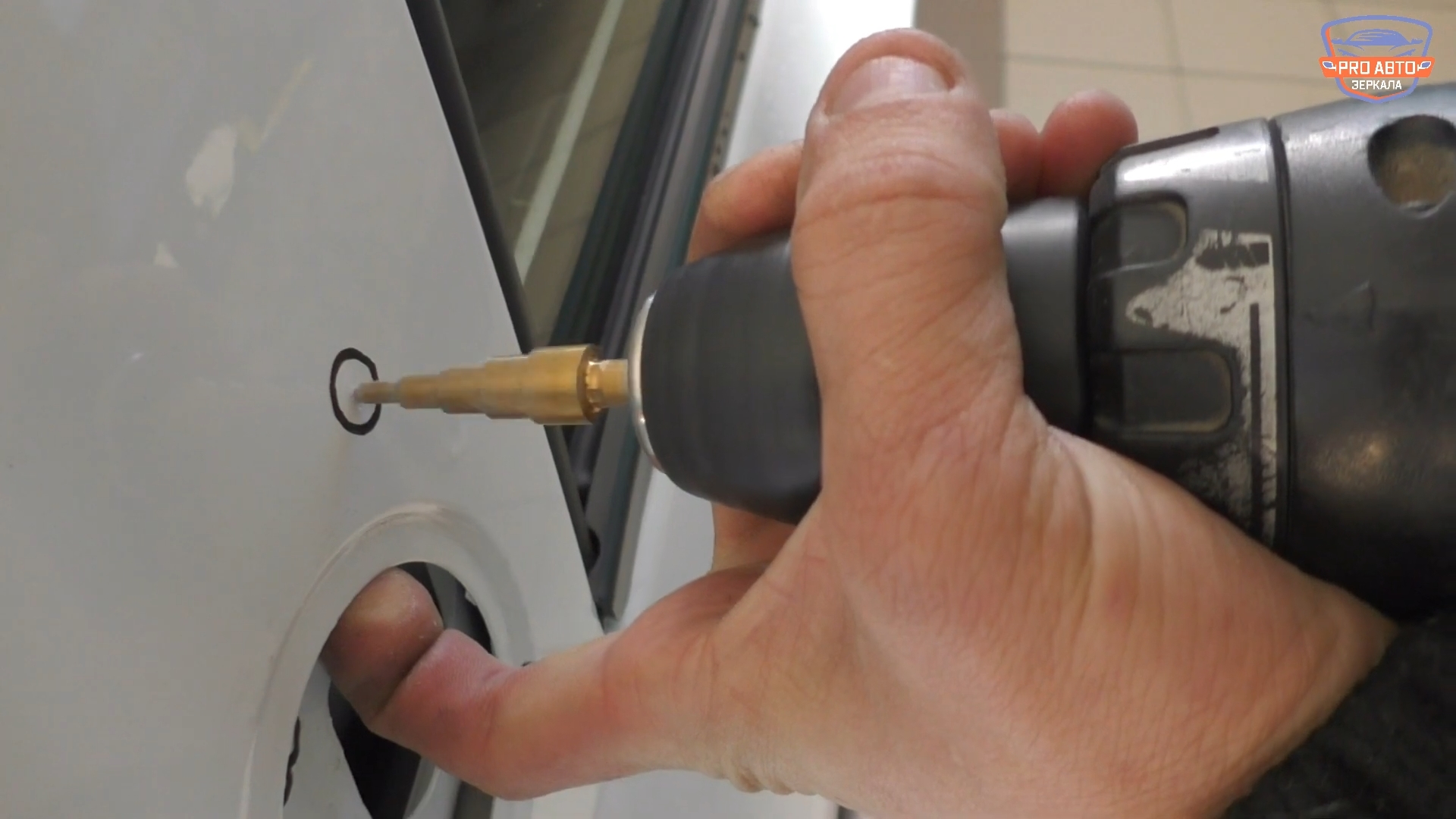 4. Доработать посадочное масто в двери под зеркала нового образца (Снять прокладку с зеркала нового образца. Сделать по прокладке трафарет из картона. Сделать отверстия в двери при помощи дрели).