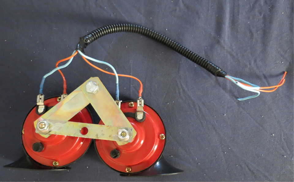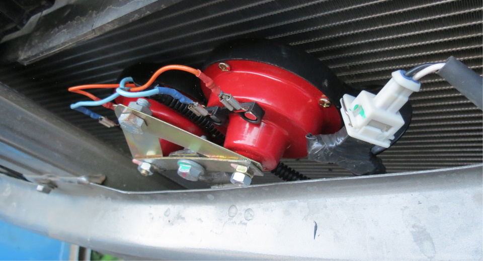 Примечание: 1.Разьём «папа» был вырезан из штатного сигнала. 2.Для подстраховки от возможного трения о корпус при вибрационной тряске провод к сигналу был притянут к бамперу изолентой.