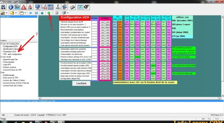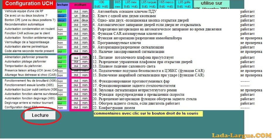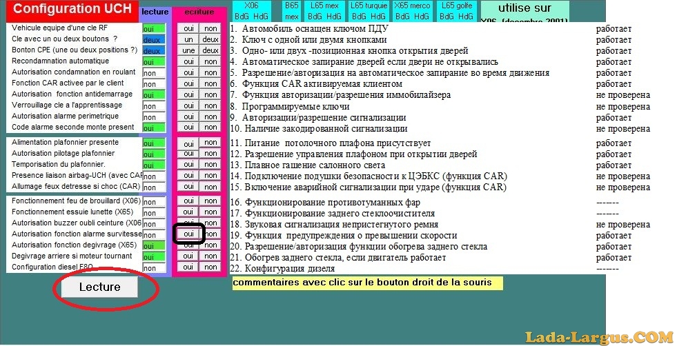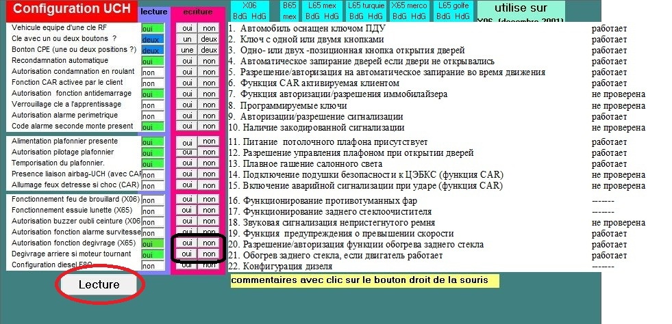 Для настройки пунктов 1 и 2 необходимо зайти во вкладку Конфигурация UCH, где в колонке Ecriture (запись) выбрать напротив пунктов 20 и 21 параметр ДА/НЕТ (по умолчанию все установлены в ДА).