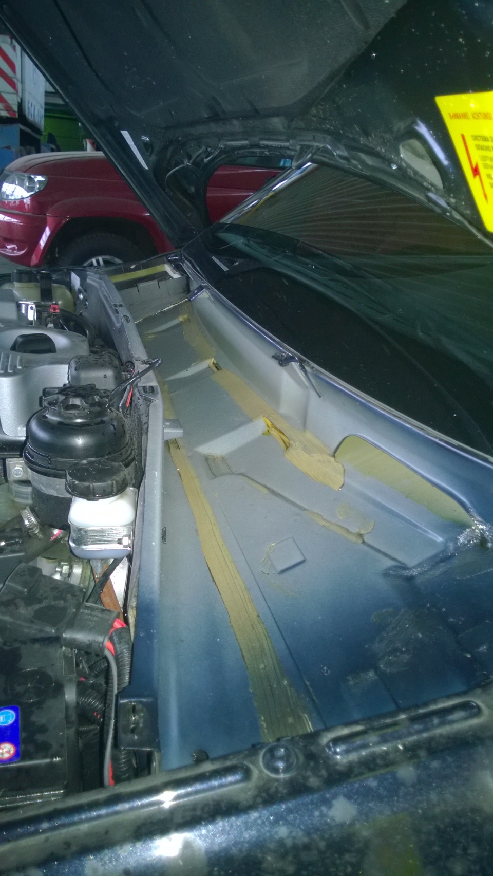 Решили сделать шумоизоляцию Шеви Нивы? Начните с проклеивания под жабо (накладкой ветрового стекла). Этот участок кузова считается одним из простых для шумоизоляции своими руками. Данная доработка позволит снизить уровень шума двигателя в салоне.