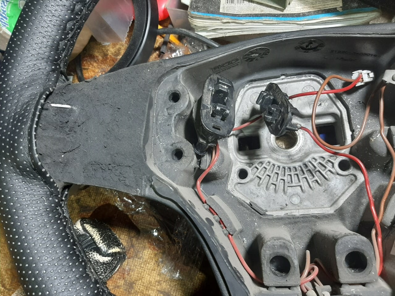 4. Установить кнопки в руль. Блок подключается под панелью. (схема в комплекте). Получился мультируль.