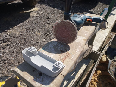 1. Сточить лишнее с ножек крепления очечника, используя насадку на дрель.