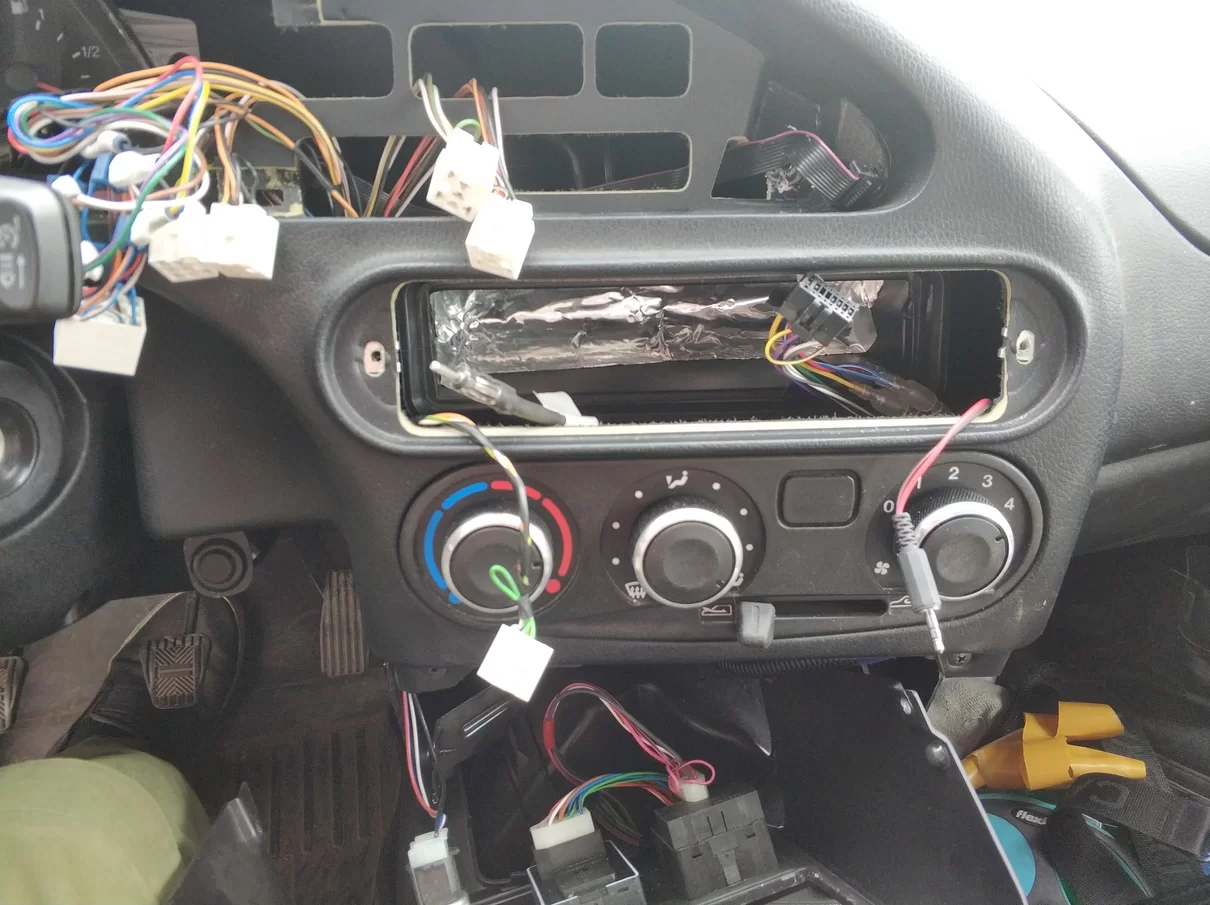 1. Заклеить отверстие распределителя, чтобы воздух не дул в тыльную часть магнитолы, используя алюминиевый скотч или виброматериал (шумоизоляция).