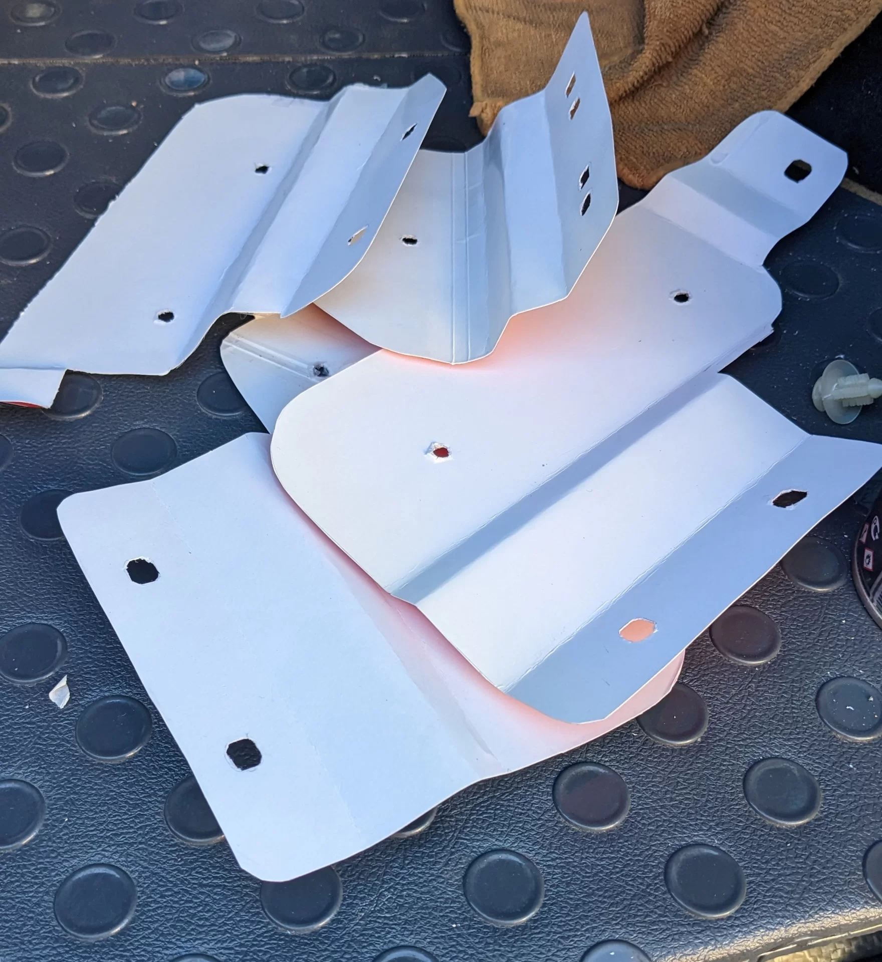 2. Сделать лекала для кронштейнов, например, из альбомной обложки. Зачем? На самих кронштейнах болты приварены и наметить отверстие, где надо сверлить не получится. Поэтому либо лекала делать, либо эти болты нужно срезать от кронштейнов, перекладывать кронштейны, намечать отверстия, а потом снова их приваривать.