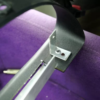 1. Изготовить крепления в штатном корпусе. Новый спортивный щиток отличается от штатного и формой и размерами, поэтому, чтобы закрепить его в приборной панели пришлось доработать приборку, изготовить кронштейны из алюминиевых уголков. К большому кронштейну закрепили щиток, а на маленькие уголки - элементы облицовки.