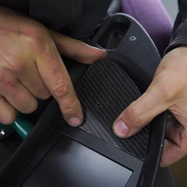 2. Вырезать облицовку из карбона. Делаем лекала и подгоняем облицовку по форме и размерам. Работа эта не сложная, но монотонная и требует внимания и точности.