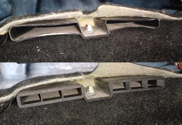 Вставки в воздуховоды предотвращают деформацию воздуховодов, тем самым улучшают обдув ног задних пассажиров. Устанавливается в заводские воздуховоды обдува ног задних пассажиров.