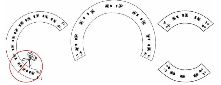 2. Установка светодиодных модулей в корпус. Т.к. светодиодные планки-универсальные, обрезаем на одной планке (тахометр) сектор с двумя светодиодами.