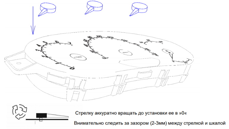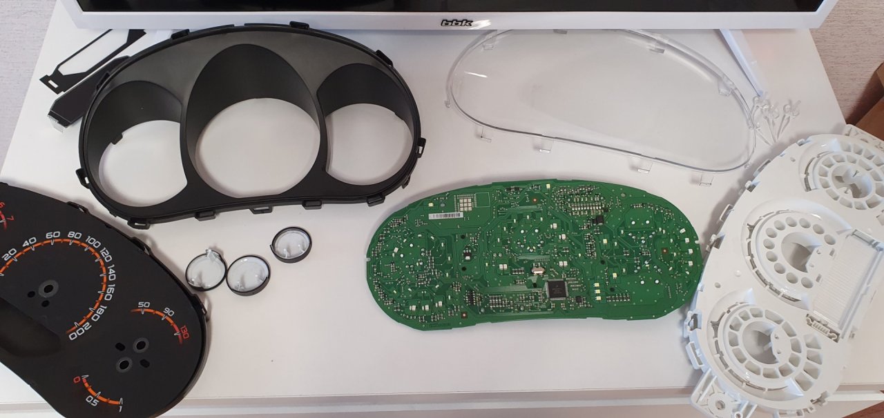 1. Выполнить сборку приборной панели в обратной последовательности (собираем все кроме стекла).
