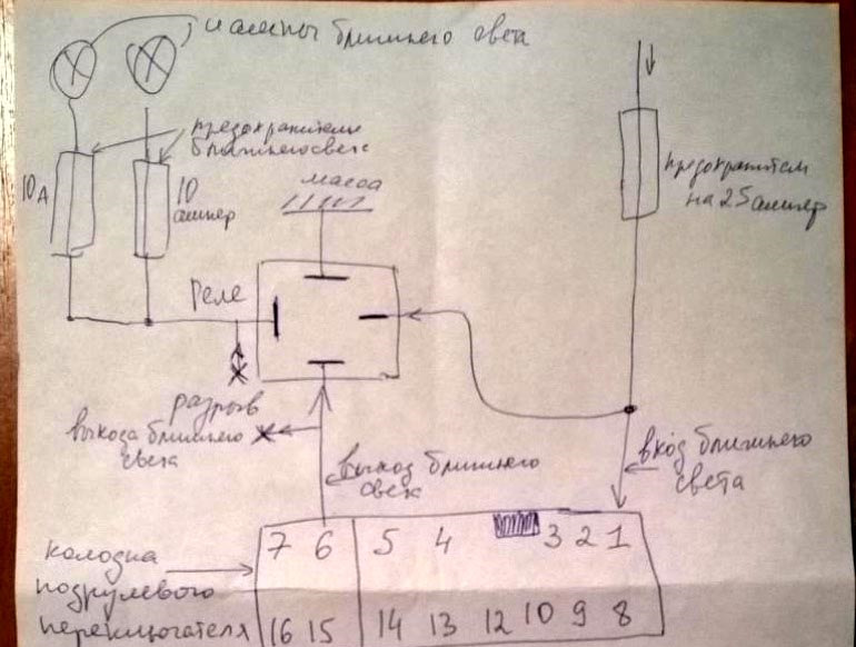 Схему установки реле на ближний свет фар предложил platonoff86: