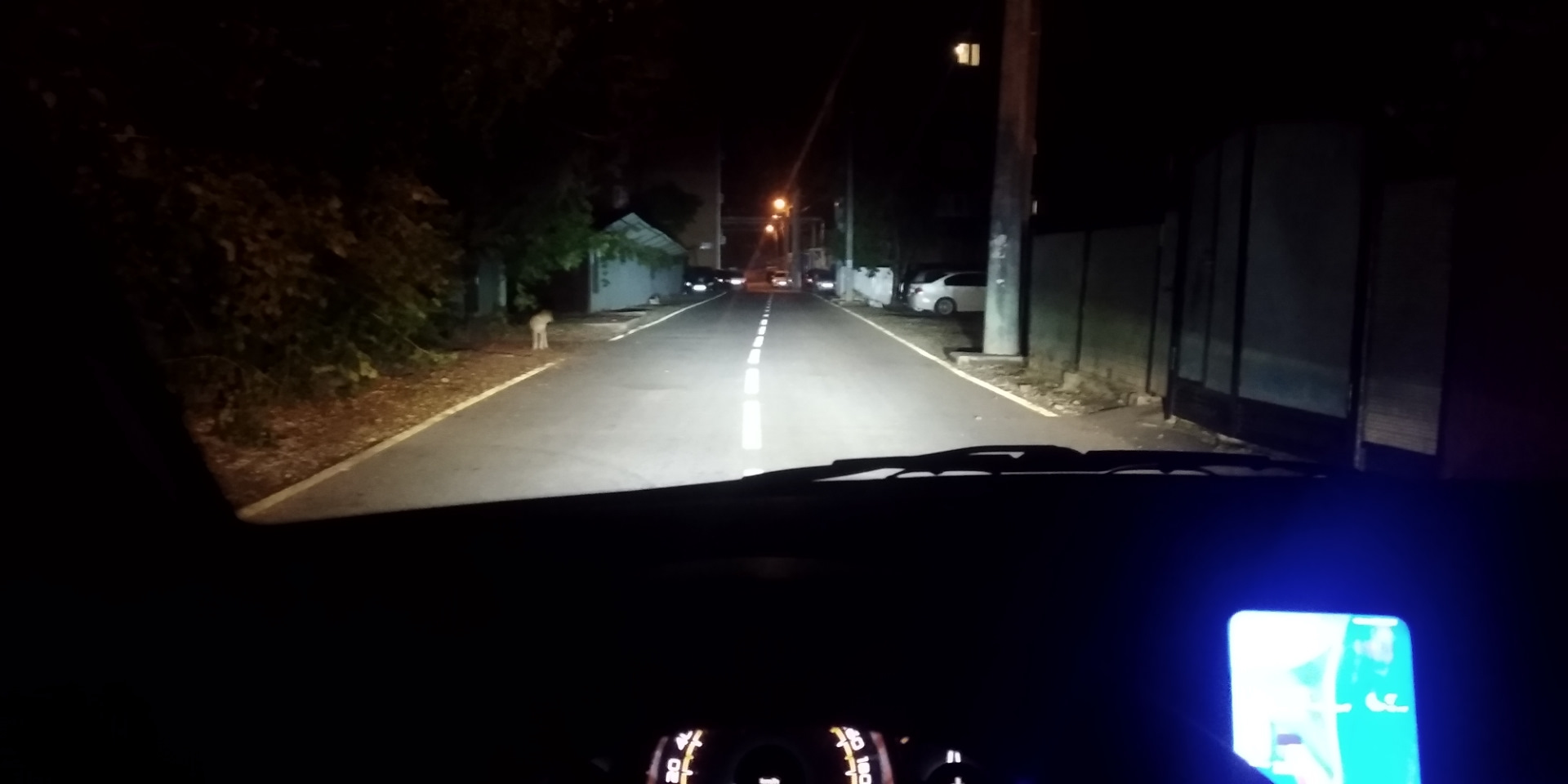 Вот так смотрятся фары Весты с линзой в дальнем: