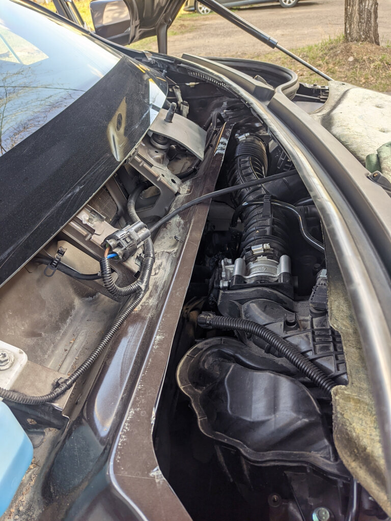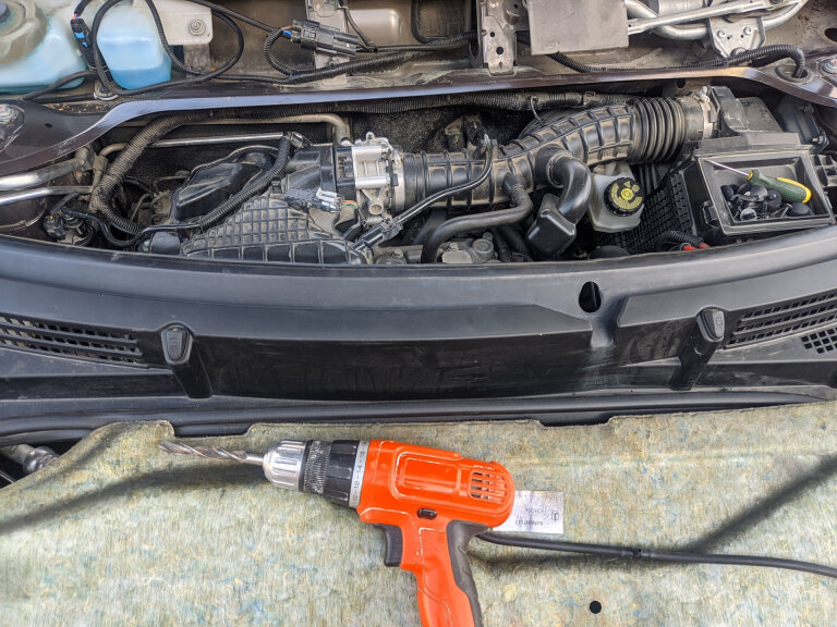 Чтобы избавится от форсунок на капоте автор доработки решил в будущем установить стеклопластиковый капот без отверстий.