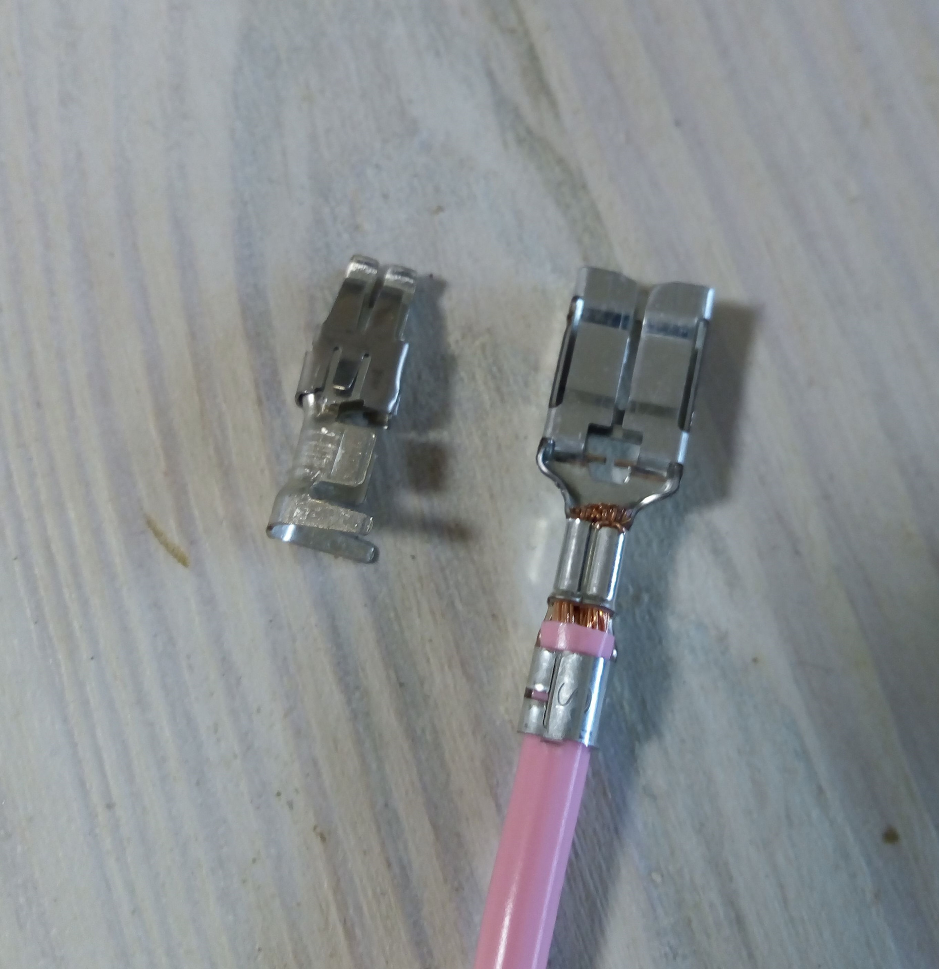 8. Подготовить два коротких провода сечением 4мм. Один конец обжать клеммой Лира 6,3мм (пойдет к контакту 87 на разъеме силового реле), а другой клеммой типа TE 1801431-1 (пойдет к контакту предохранителя на 30А).
