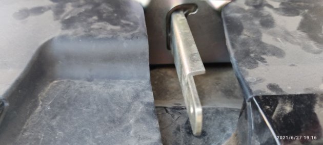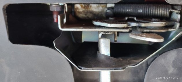 1. Предлагается наклеить небольшой кусок резинового D-образного уплотнителя в углубление перед замком капота (автор фото din0). Это предотвратит попадание грязи, но сделает язычок замка менее доступным. При открытии капота придется каждый раз марать пальцы.