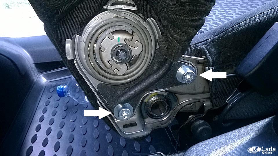 Для удобства при установке можно вывернуть четыре болта Torx T14 от кузова автомобиля и наклонить сиденье на одну сторону.