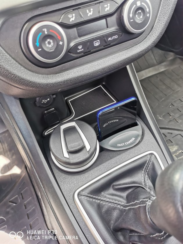 Вместо тоннеля для беспроводной зарядки телефона можно задействовать свободное место в центральной консоли (пример, Лада Веста):