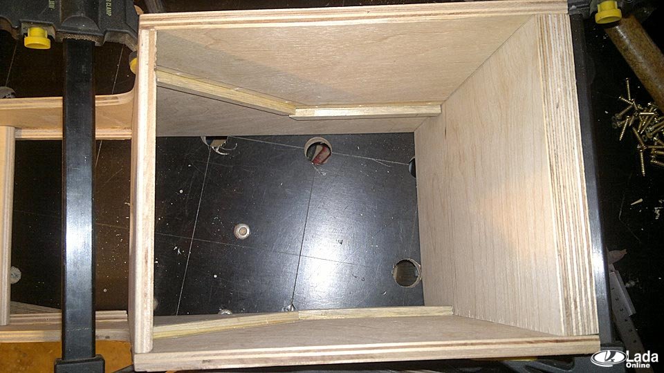 Подлокотник строиться из фанеры 8мм, только задняя стенка сделана из 18 мм (для установки петли верхнего бокса).