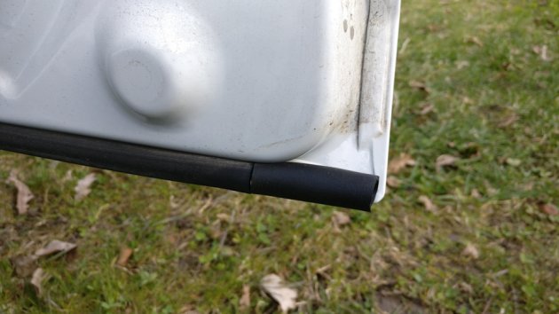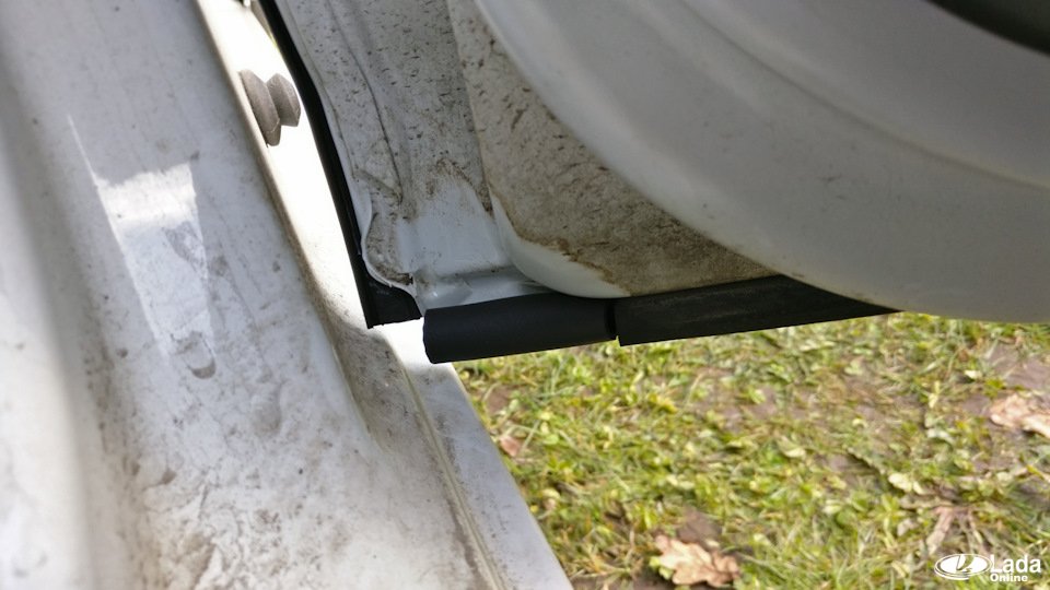 1. Штатные резинки Весты надежно прилегают по всему периметру передних дверей, за исключением промежутка между задней дверью. Закрываем щель при помощи уплотнителя РКИ-19 (артикул 000017504293020), предварительно очищая и обезжиривая поверхность на кромке задней двери.