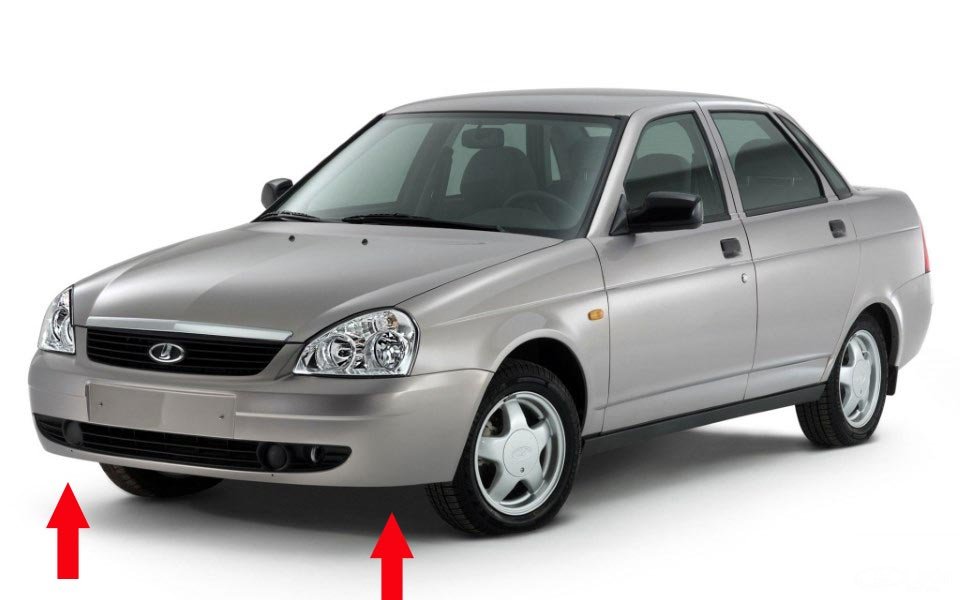 Новый бампер Приоры SE имеет в нижней части специальные отверстия, которые специально предназначены для установки ресничек. В этом случае установить накладки можно без переделок. Защелкиваем их в штатных местах обвеса, и дополнительно фиксируем край со стороны колеса саморезом.