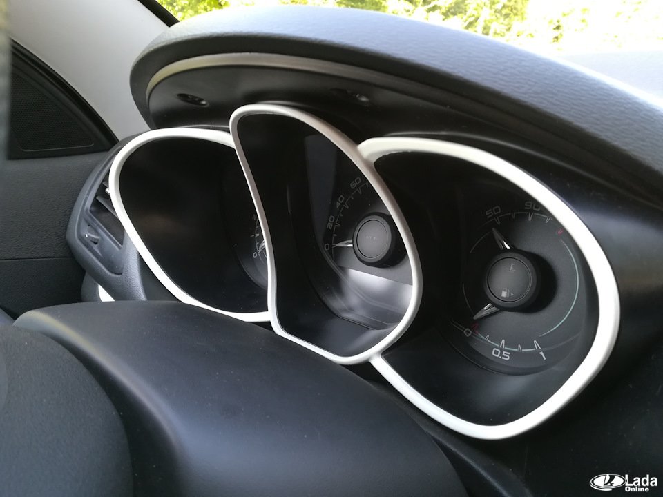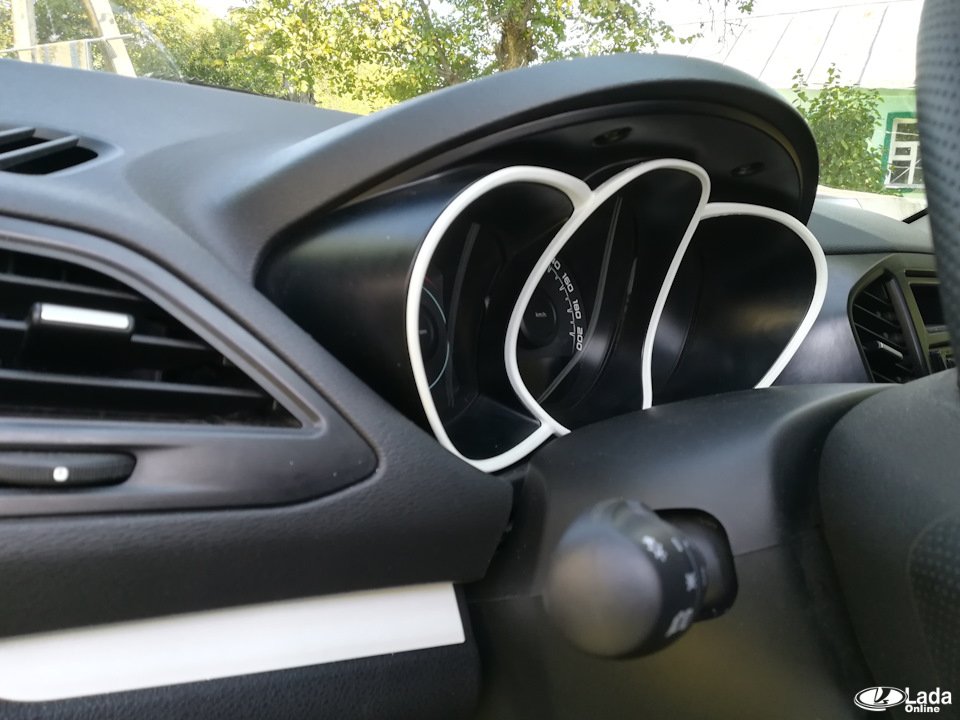 С появлением лифтбека Лада Гранта обновилась и панель приборов автомобиля (колодцы стали белого цвета). Аналогичная ситуация просматривается и на седане Лада Веста, у которого в более дорогих комплектациях окантовка колодцев щитка приборов окрашена в белый цвет. Владельцы более простых версий могут доработать панель самостоятельно.