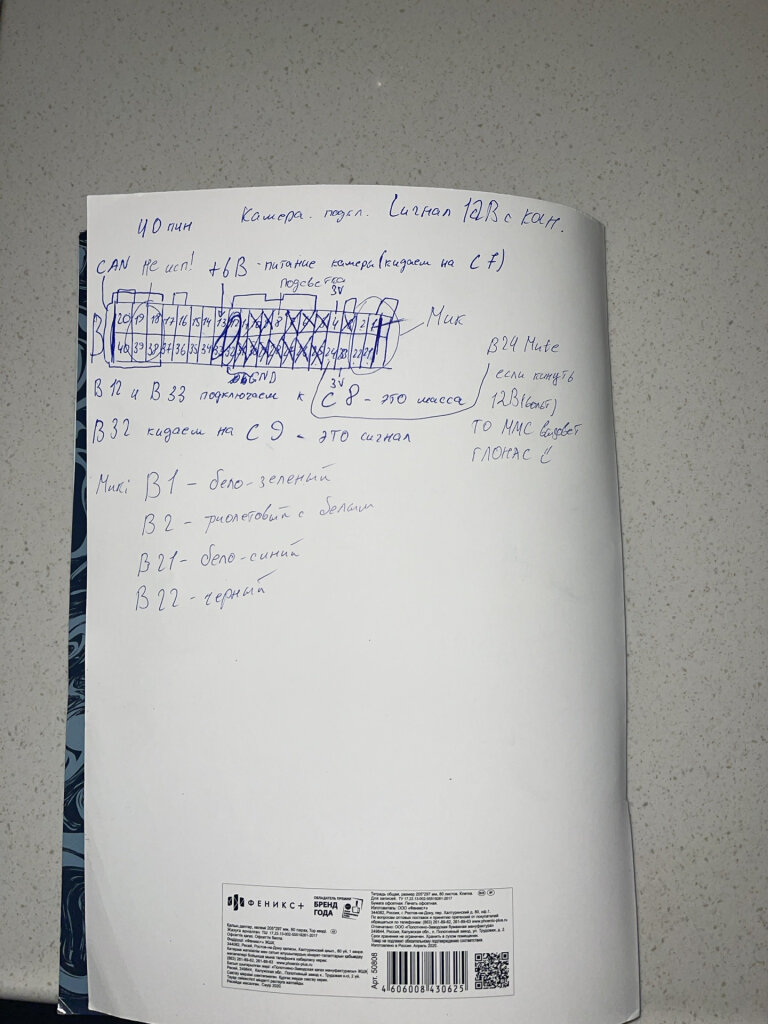 Остальные провода, отвечающие за камеру, микрофон, B19 LCAN-M H, B39 LCAN-M L так — же соединить с "красной мини ISO-мамой". Там уже образца для распиновки нет, просто себе на листочек записать, где какой пин.