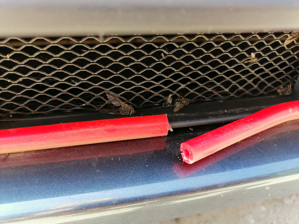 Красные шланги A-Sport. Потребуется шланг трамблера 2101-3706605 красный силиконовый A-sport (артикул 10038669ASP). Нужно разрезать шланг вдоль и с помощью пластиковой карты заправил между нижней частью бампера и черной решеткой радиатора.