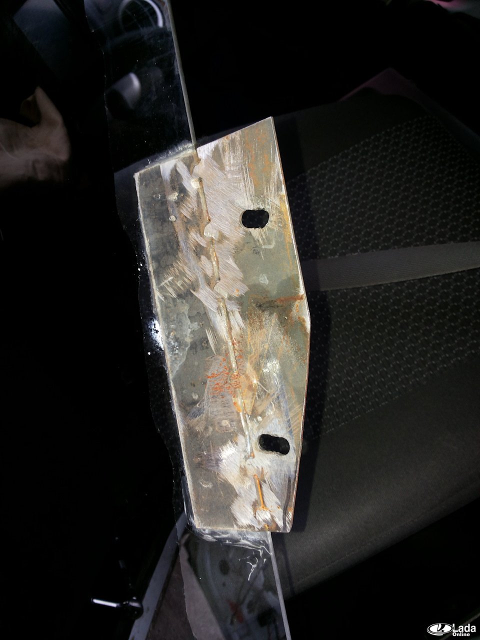 Для второго стекла были куплены реечные стеклоподъемники от Газели. Штатные ЭСП — тросиковые. Доработки начинаются с укорачивания дополнительного ЭСП, затем переваривается крепление под стекло. Крепления штатного ЭСП тоже пришлось переварить, чтобы в двери появилось больше места для наружного тонированного стекла. Это стекло приклеиваем к креплению эпоксидным клеем. Чтобы стекла не царапались, используем маделин между стеклами.
