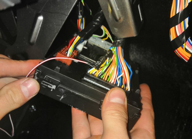 Лампа ПТФ в приборной панели Весты управляется по CAN шине, поэтому доработка будет касаться ЦБКЭ (центрального блока кузовной электроники). Снимаем бардачок и за ним выворачиваем одну гайку крепления ЦБКЭ (ключ «на 8»). Находим в разъеме «S1 BLACK» пятый контакт в правом ряду (считать снизу). Чтобы включить индикатор ПТФ необходимо на этот контакт подать +12 В, для этого добавляем в этот контакт еще один провод.