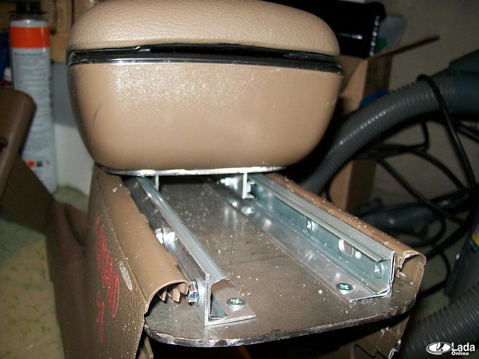 Устанавливаем сдвижной механизм на основание, используя уголки 20х20. Закрепляем подлокотник на основание.