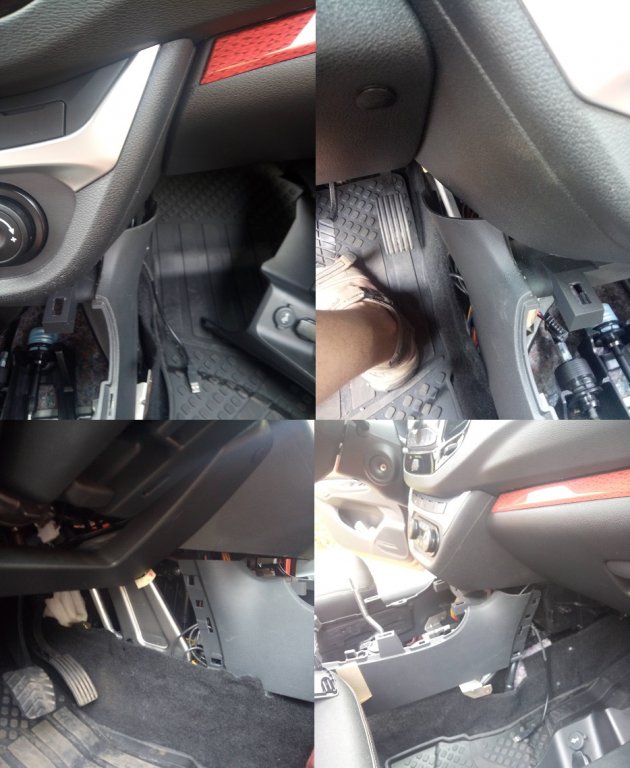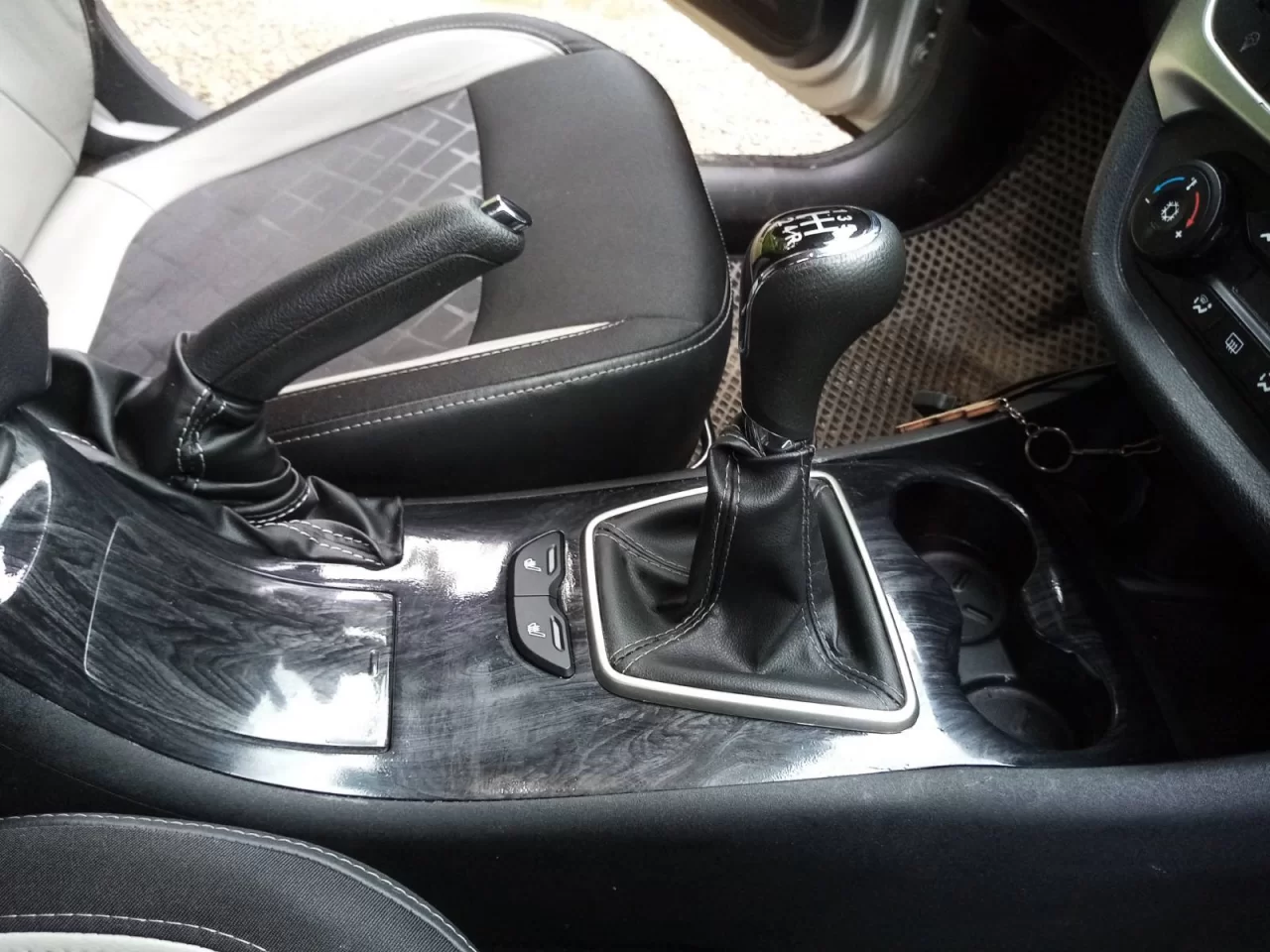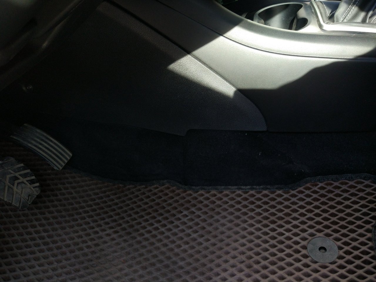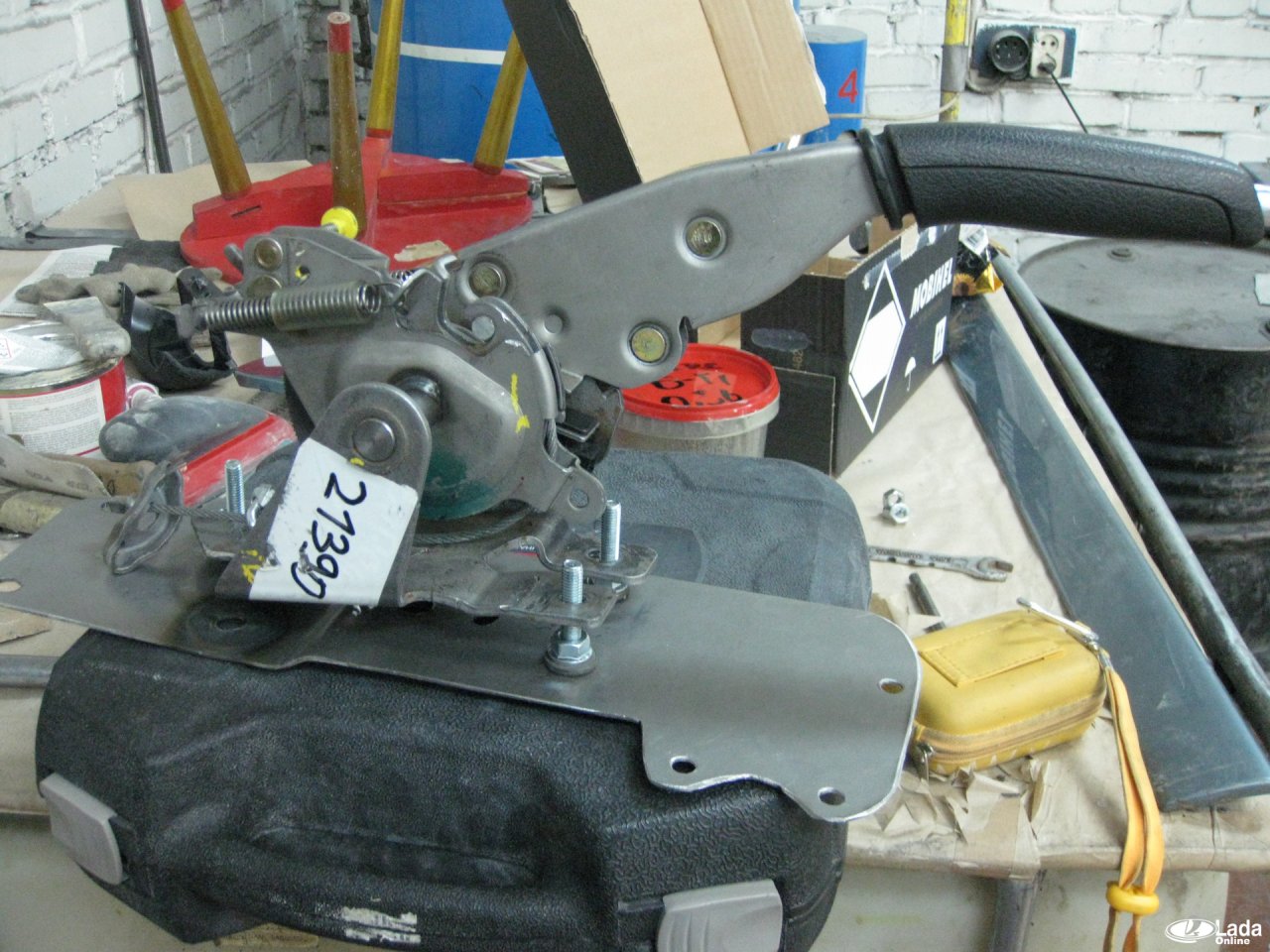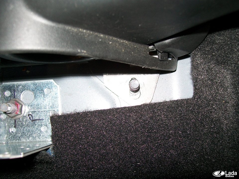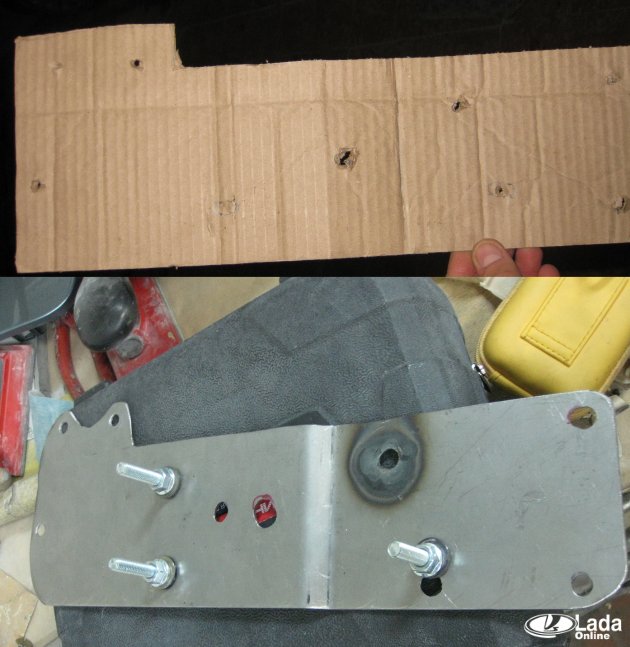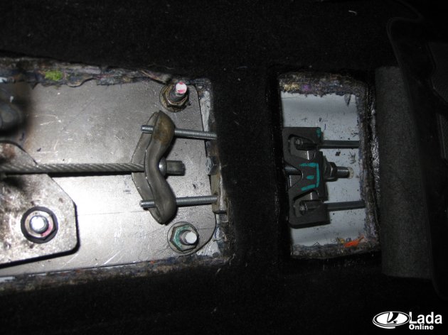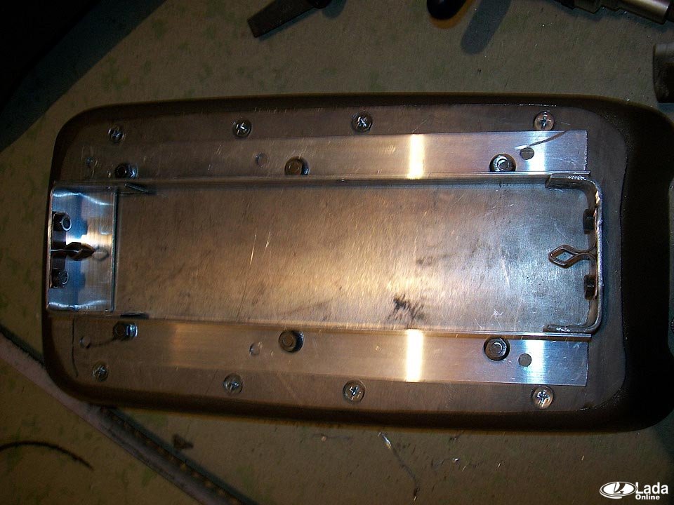 Рычаг ручного тормоза смещён влево относительно центра, а прорезь под рычаг в консоли сделана по центру. Поэтому нужно немного рассверлить отверстия в кронштейнах крепления рычага ручника.