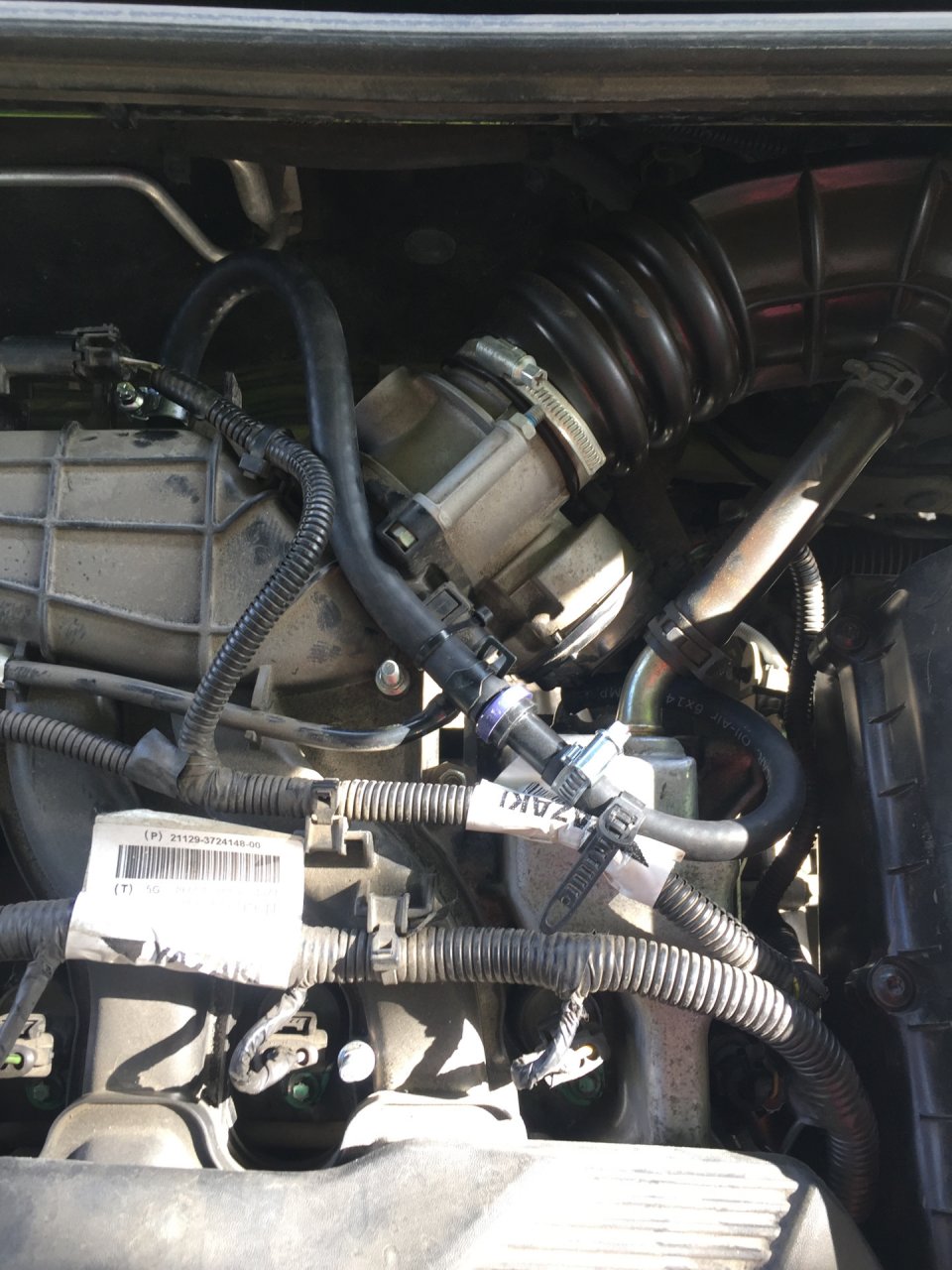 ![установка клапана PCV в систему вентиляции картерных газов ВАЗ (тросовый дроссель)]()