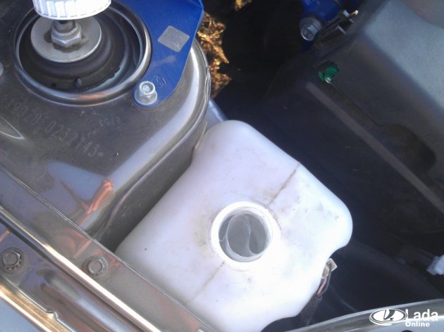 Чтобы устранить эту неисправность сначала убедитесь, что болты крепления бачка надежно затянуты. Если это не решает проблемы, тогда предлагается воспользоваться шумоизоляционными материалами. Например, наклеить на днище бачка кусочки битопласта или сплэна, предварительно сняв ветровую накладку (инструкция для Весты и XRAY).
