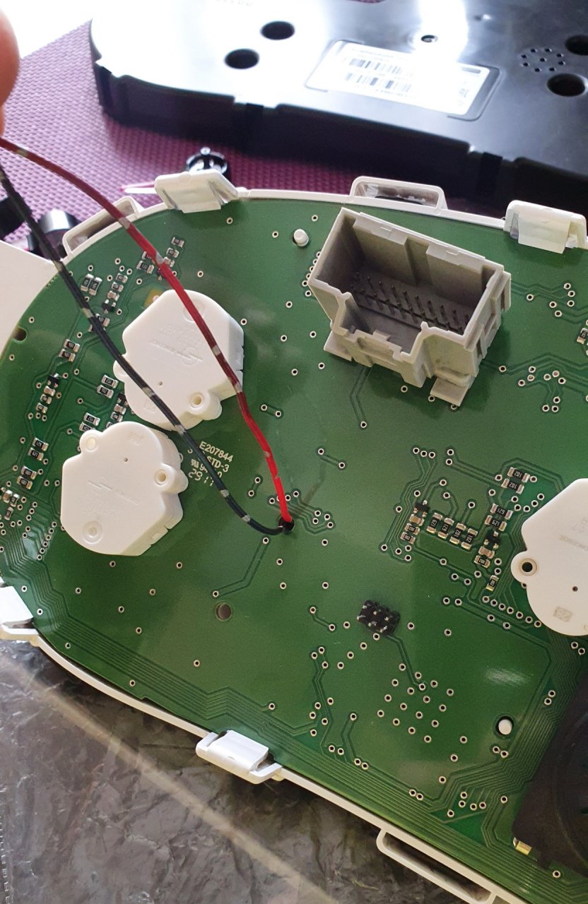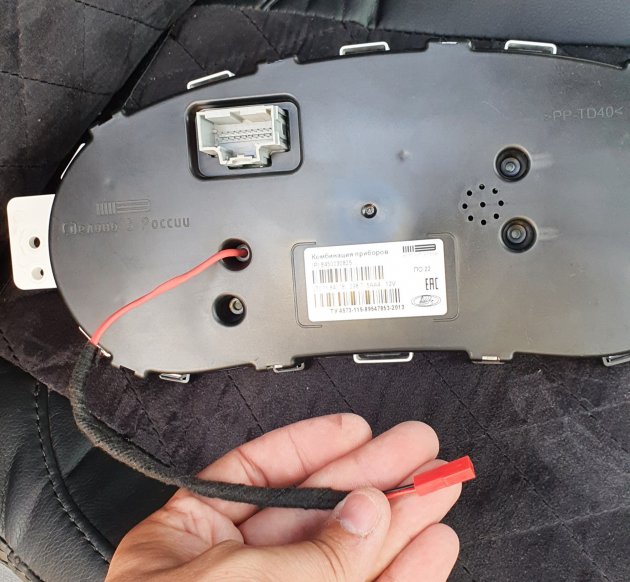 - Т.к. датчик работает, как обычный выключатель, то его два провода подключаем в разрыв «массы» или «питания» любой лампы или светодиода. В данном случае индикатор низкого уровня омывающей жидкости был выведен на панель кнопок (впаивали SMD-светодиод). Кстати, на сайте можно купить готовый блок с кнопками.