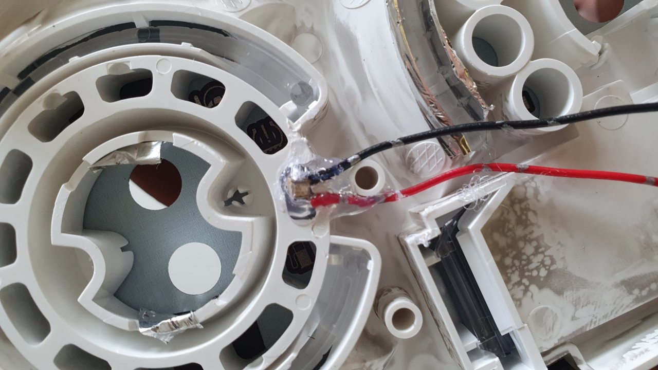 - Установить датчик в отверстие, пройтись по швам клеевым пистолетом.