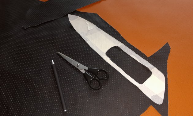 Переносим размеры шаблона на оргалит. Приклеиваем к нему поролон, отрезаем по периметру с запасом в несколько миллиметров.