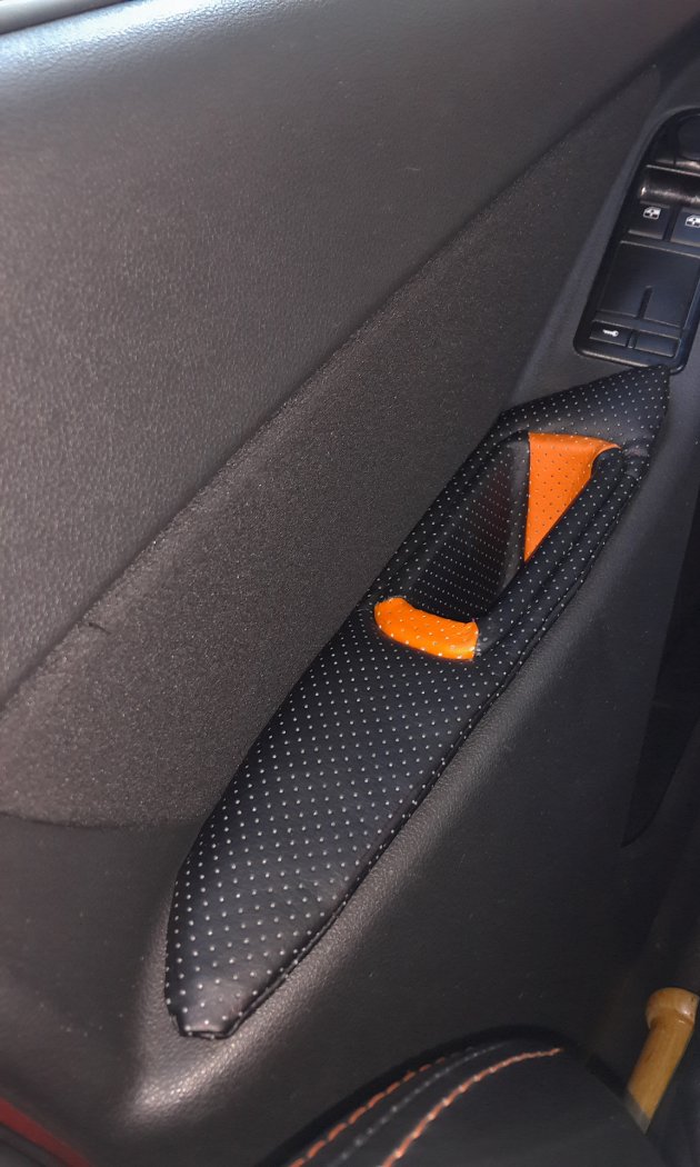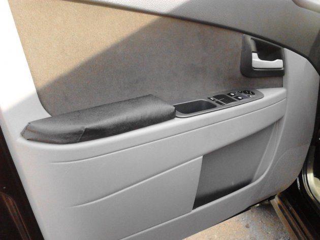 Теперь локоть руки будет находится на мягком подлокотнике и не будет уставать. При необходимости самодельный аксессуар можно быстро демонтировать. Дополнить обшивку двери можно при помощи декоративных кожаных вставок, а также чехлами для штатного подлокотника, ручки КПП и сидений (подробно).